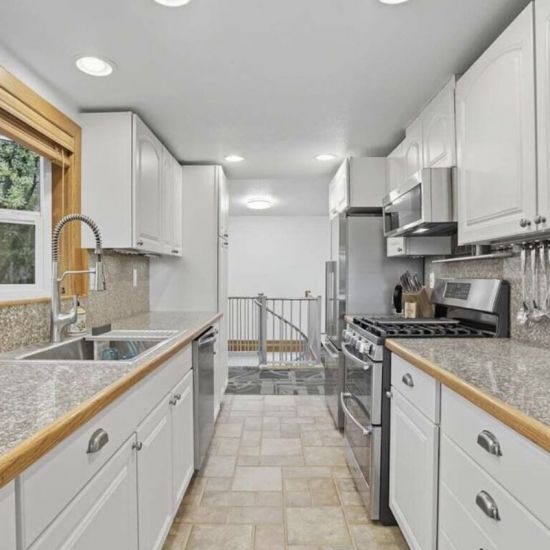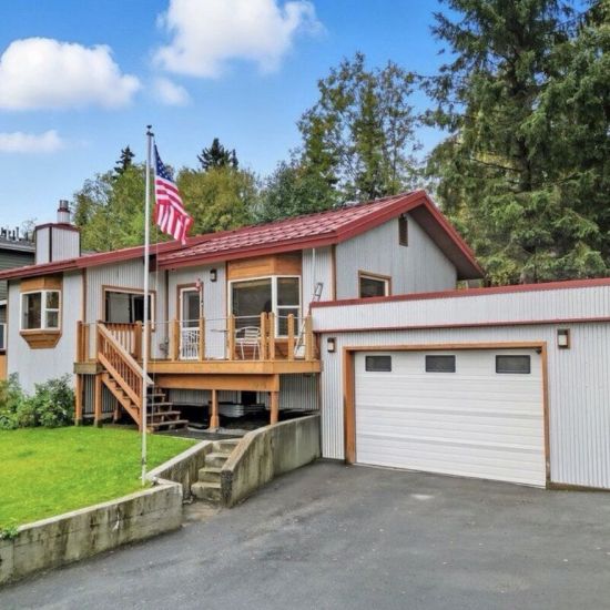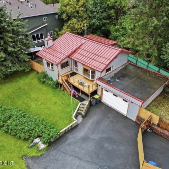 Custom 3BR/2BA home w/ million-dollar views of Westchester Lagoon! Enjoy sunsets & wildlife right from your living room. Kitchen features granite counters, SS appliances & tile flooring. Maple hardwood floors in the living room, dining & upstairs bedroom. Bathrooms finished in granite & tile, w/ jacuzzi & sauna. Daylight basement, gas fireplace, metal roof & siding.New heating system & on-demand water heater (2025). Oversized 2-car garage w/ 9' doors. RV parking, fenced yard, sheds. Across from park & trails! R2M zoning.