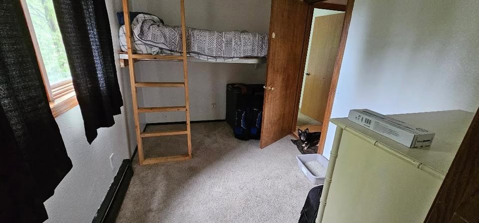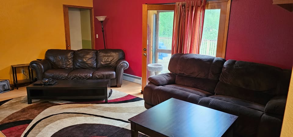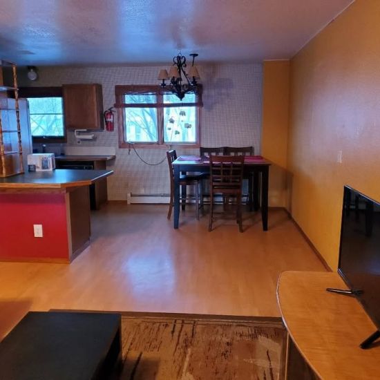 2nd floor furnished, large living room, dining & kitchen. Shared laundry with 1 studio. Off-street parking for 2 vehicles 1 with carport. Large deck with patio table provided. Non-smoking property, no vaping as well. Can provide kitchen supplies if needed. We can also get a 2nd twin to put under the built in loft if 2 children are present. 2 small animals or 1 large dog ok, (on leash and pick up after when outside) All utilities and wifi is included yard and driveway care is also included.
