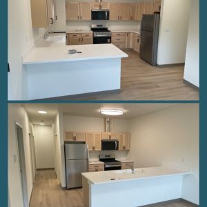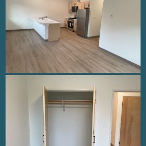 ground floor, in-floor heating, luxury vinyl flooring throughout, solid surface countertops, and windowsills, In-unit washer and dryer, blackout blinds, covered decks, energy efficient, large windows, soundproofing to minimize noise transfer, kitchens include peninsula seating for additional space