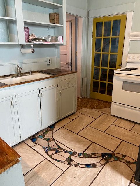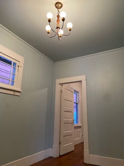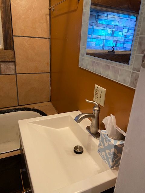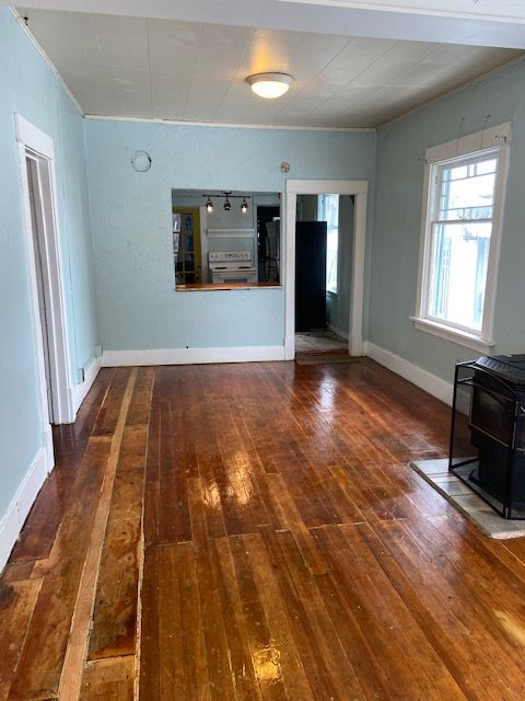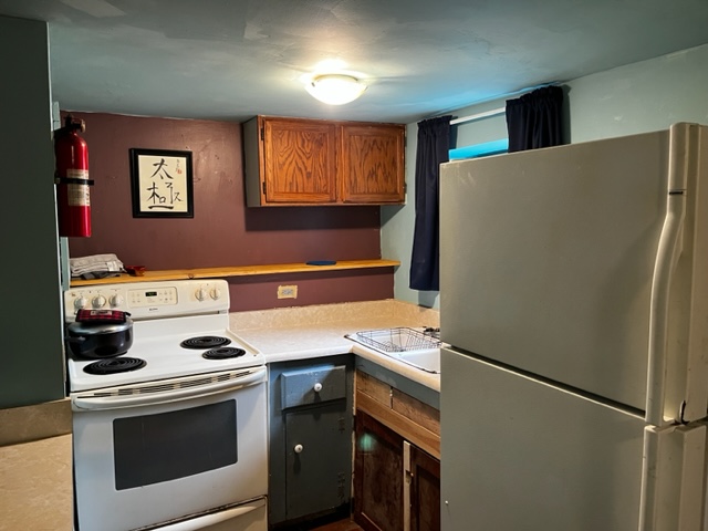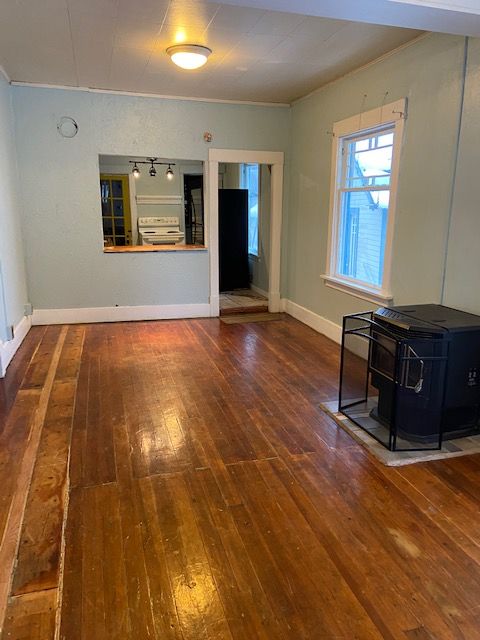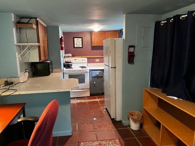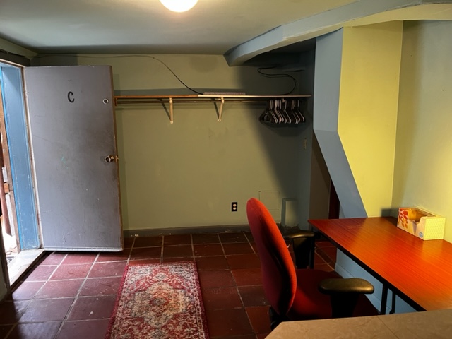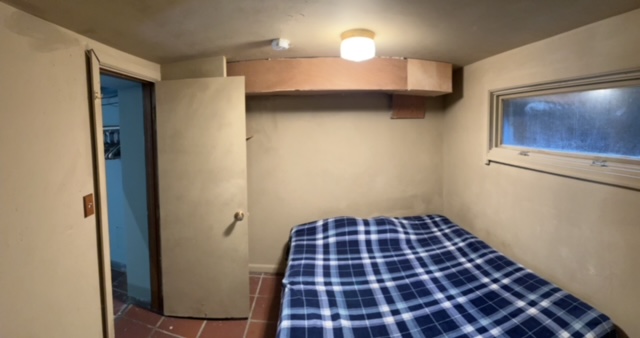 Basement unit with sump area. All tile floors with low ceilings and moisture problems. Access to yard in rear area.