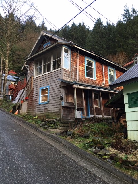 This property is a triplex located in an idyllic spot on Starr Hill. It has views of Mt. Maria and downtown Juneau. Parking is a problem during the Wintertime there, and street is up several flights of stairs, but the view and solitude of the area is worth the walk. None of the units are suitable for the mobility impaired. The rents are reasonable and we accept pets and section 8.
