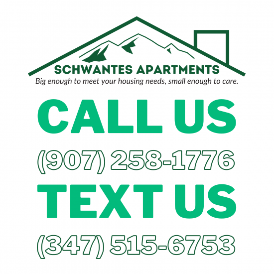 Call or email today to apply! (907) 258-1776 | info@schwantesapartments.com